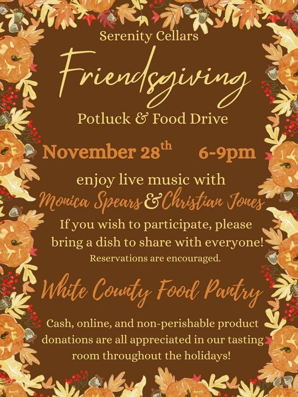 Join us for our Friendsgiving Potluck and Food Drive! This will be an evening full of community, food, and live music by Monica Spears and Christian Jones.